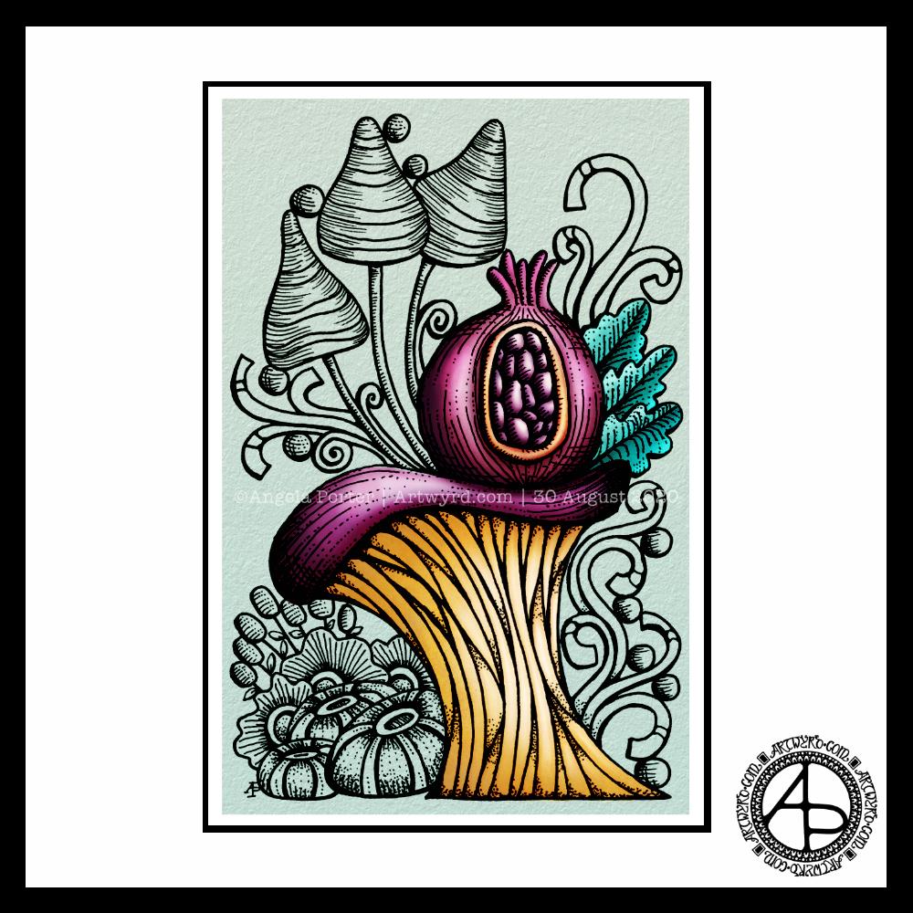 As before, I drew the mushrooms and tangle patterns on Rhodia dot grid paper with a Sakura Pigma Sensei 04 pen. After I’d scanned the page, I increased the contrast to remove the dot grid.