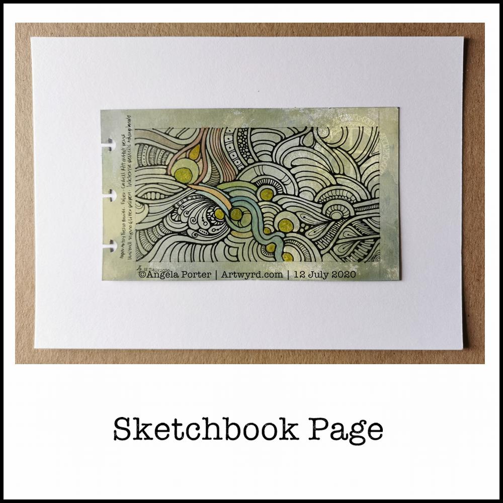 I find it difficult to resist a bit of shimmer and shine on my art, so I used a Uniball Signo gold glitter gel pen to fill in some of the circles in the design.