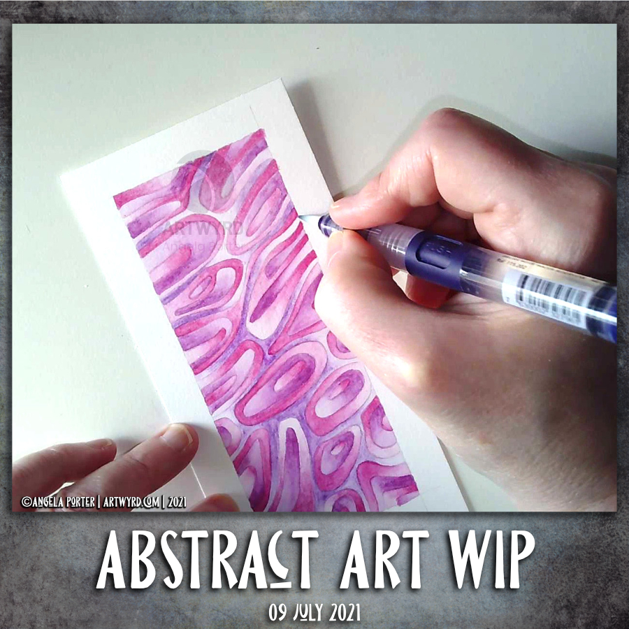 Another day, another abstract WIP. This is an iteration of the first one from earlier this week. This time, I’m using analogous colours – Fuchsia, Thistle and Mauve Inktense pencils. I’m also using Canson Moulin du Roy 100% cotton paper, which allows the inktense pigments/dyes/inks to spread far more smoothly than other papers. The photo makes it look like the gradients aren’t all that smooth, but they are much better when seen with the eye. Though, I do have a little work to do with the purple mauve areas.